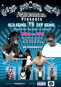 “Old Skool vs New Skool” is a continuation of the recent successful event “A Tribute to Old Skool Nite” which was held on 31st July 2010. Let’s come together as ONE to pay Tribute to Retro Tunes and Groove to the music of New Skool Hip Hop and R&B. We are going to bring back the music that swirl in our good memories from primary to secondary school and college to university days. This EXCLUSIVE night is called “Old Skool vs New Skool” where you will hear music from the Past to the Present. This is a night celebrating the Old Skool classic hits on VINYL and New Skool Edgy hits on CD Deck with MCDave & DJ Rex.