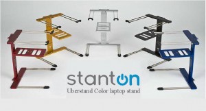 The Uberstand laptop stand is an essential tool for the traveling laptop DJ / Musician. Most DJ booths and performance venues were not designed to accommodate a laptop, which creates a hassle for the DJ in many spaces. The Uberstand alleviates this issue. Folded, the Uberstand is the perfect travel companion to your laptop. Unfolded, its striking industrial design comes to life and safely elevates your laptop above your work space while providing a specially crafted shelf for your ScratchAmp or external hard-drive.