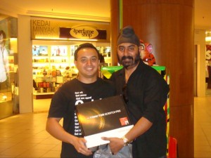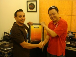 Dave Ramana, SoundKontrols Executive Director presenting Master Dealership plaque for SoundKontrols Acoustics to Jack Tan, Director of Desa Home Theatre.