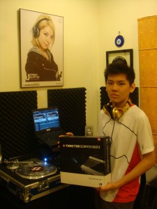 DJ Dharwin- “I love music but because I am only 8 years old, there isn’t any DJ Academy in Malaysia or Singapore who was willing to teach me. I got to learn the art of mixing from MCDave who was extremely patient with someone my age. I have a lot to learn, but for a start I am happy with my classes and the syllabus which was customized for me. A Big Thank you to my teacher MCDave”.